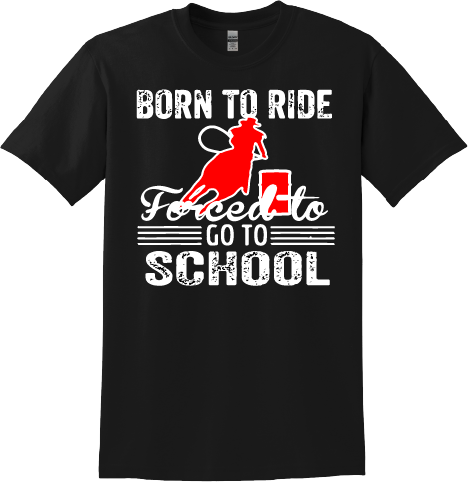 Copy of Born To Ride, Forced To Go To School in Red Barrel Racing T-Shirt